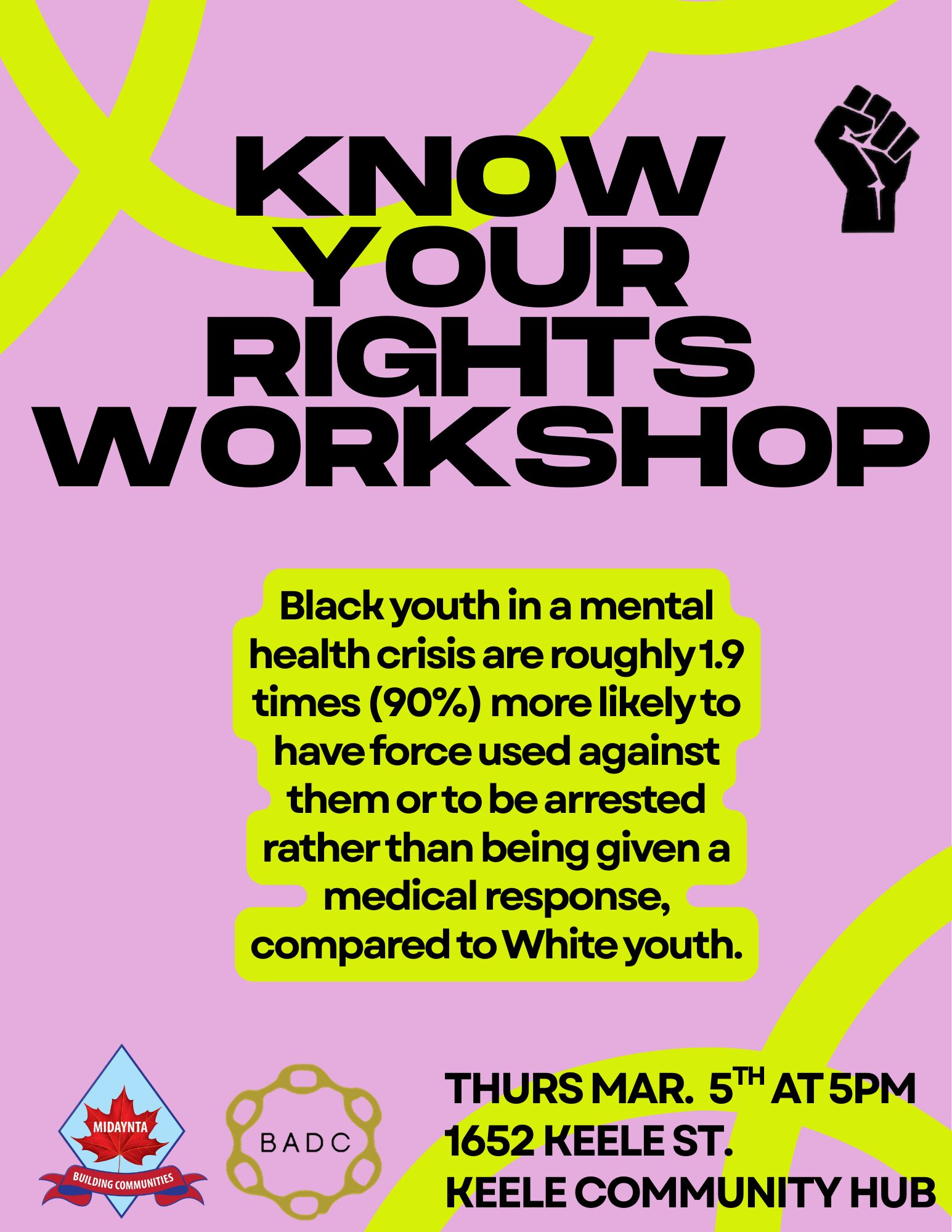You’re invited to the Keele Community Hub on March 5th at 5:00 PM for an interactive “Know Your Rights” workshop.